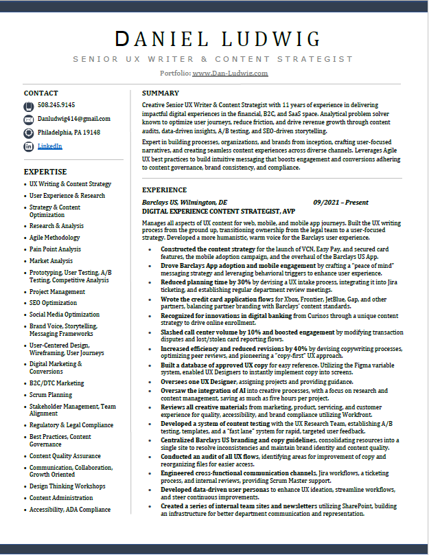 My ResumeFor my most up to date credentials, check my LinkedIn at: https://www.linkedin.com/in/dludwig414/